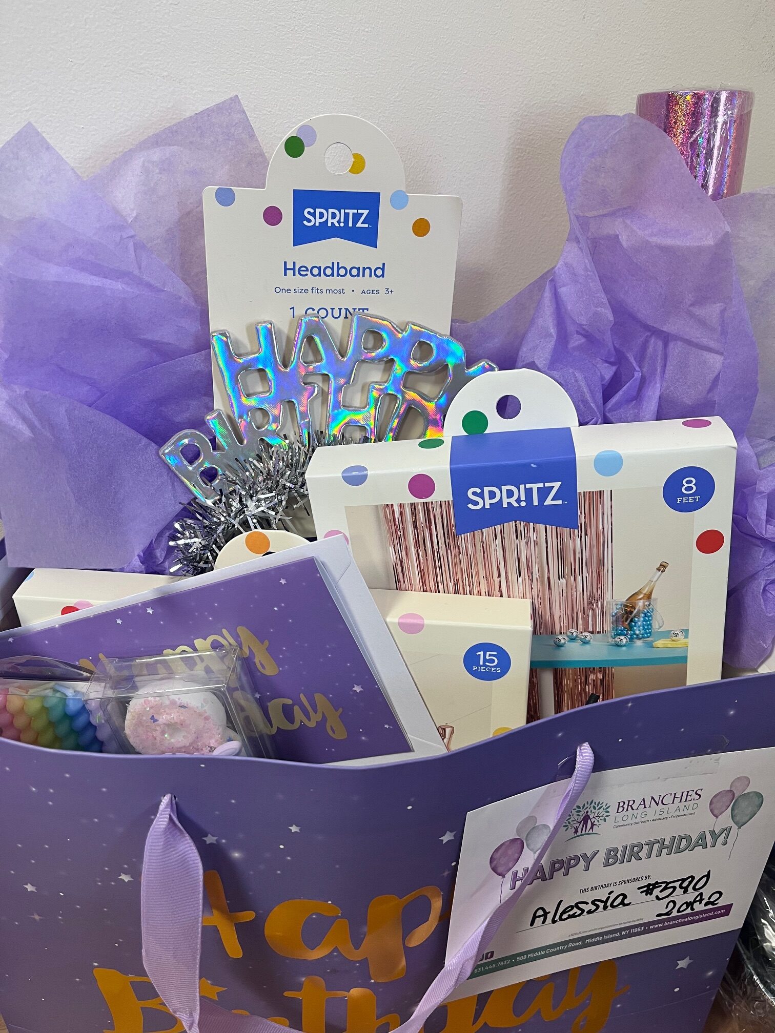 At Branches Long Island, we believe every child deserves to feel celebrated on their birthday no matter their family’s circumstances. Our Birthday Program provides children in our community with thoughtfully prepared birthday boxes that may include gifts, party supplies, and special touches to help make their day feel joyful and seen.